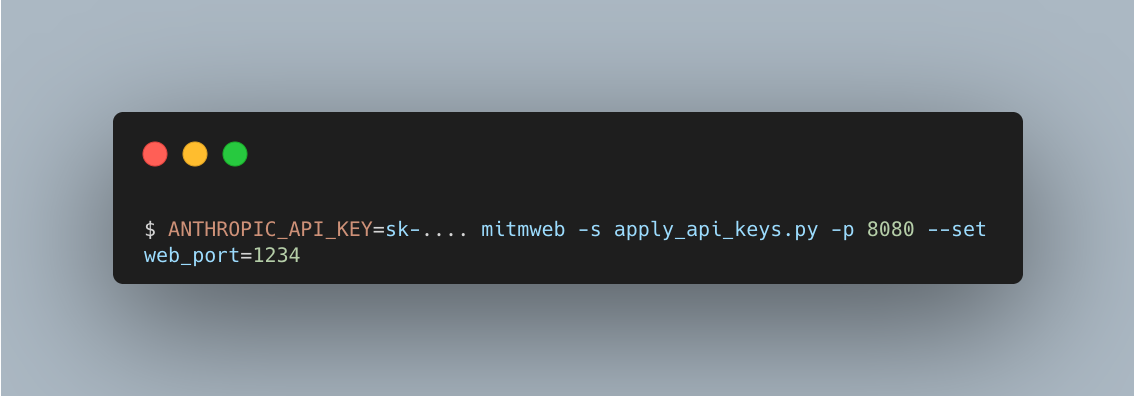 This kind of technique is not unique to hiding your Anthropic API Keys: you could insert dummy API keys and secrets and use mitmproxy addons to intercept these HTTP requests and inject actual API keys once the request has left the Claude Code process and sandbox.
